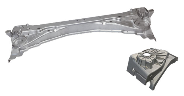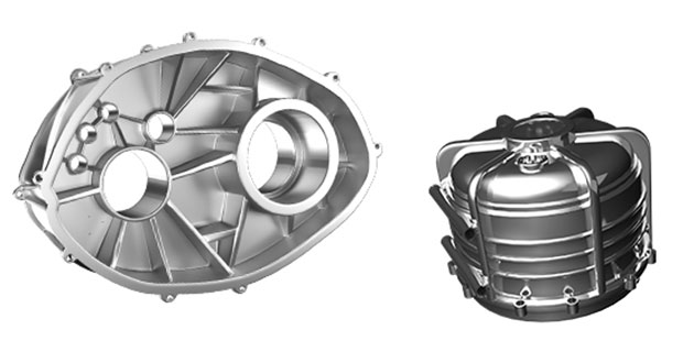 EV components: stator housing and gear case.